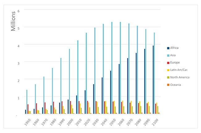Past and Projected Demographics of the World Population from 1950 to 2100 (Thousands)5